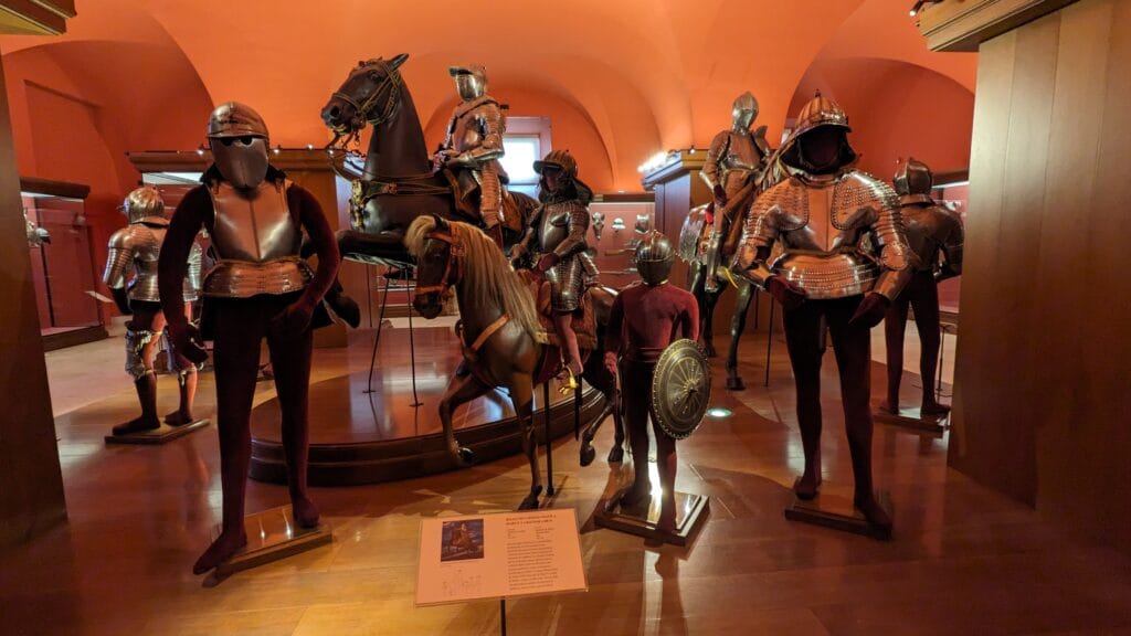 Before we get into the highlights, I have to mention the recent refurbishment. The armoury was closed for over a year, and when it reopened, the big change was the installation of a new overhead lighting system. In the past the space was rather dim and gloomy. Now, the lighting picks out every engraved detail, every inlaid decoration, every rivet and flourish. It has genuinely transformed the experience. When I visited for the reopening I was struck by how much you can now see that you simply couldn’t before, so give yourself at least 45 minutes. Or, if you’re a military enthusiast, at least an hour.