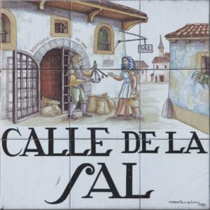 Sign of CALLE DE LA SAL (street) in Centro district in Madrid (Spain).